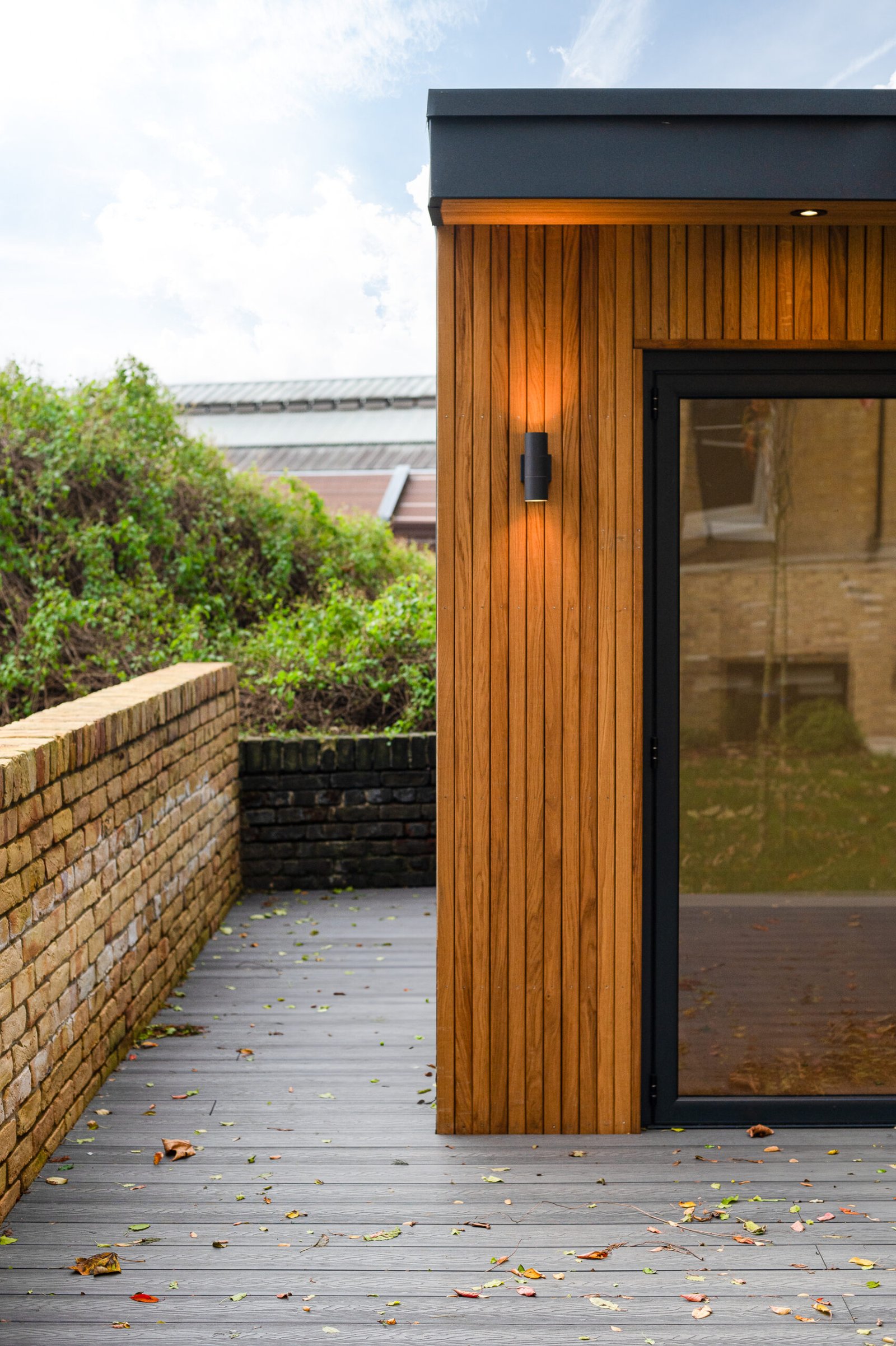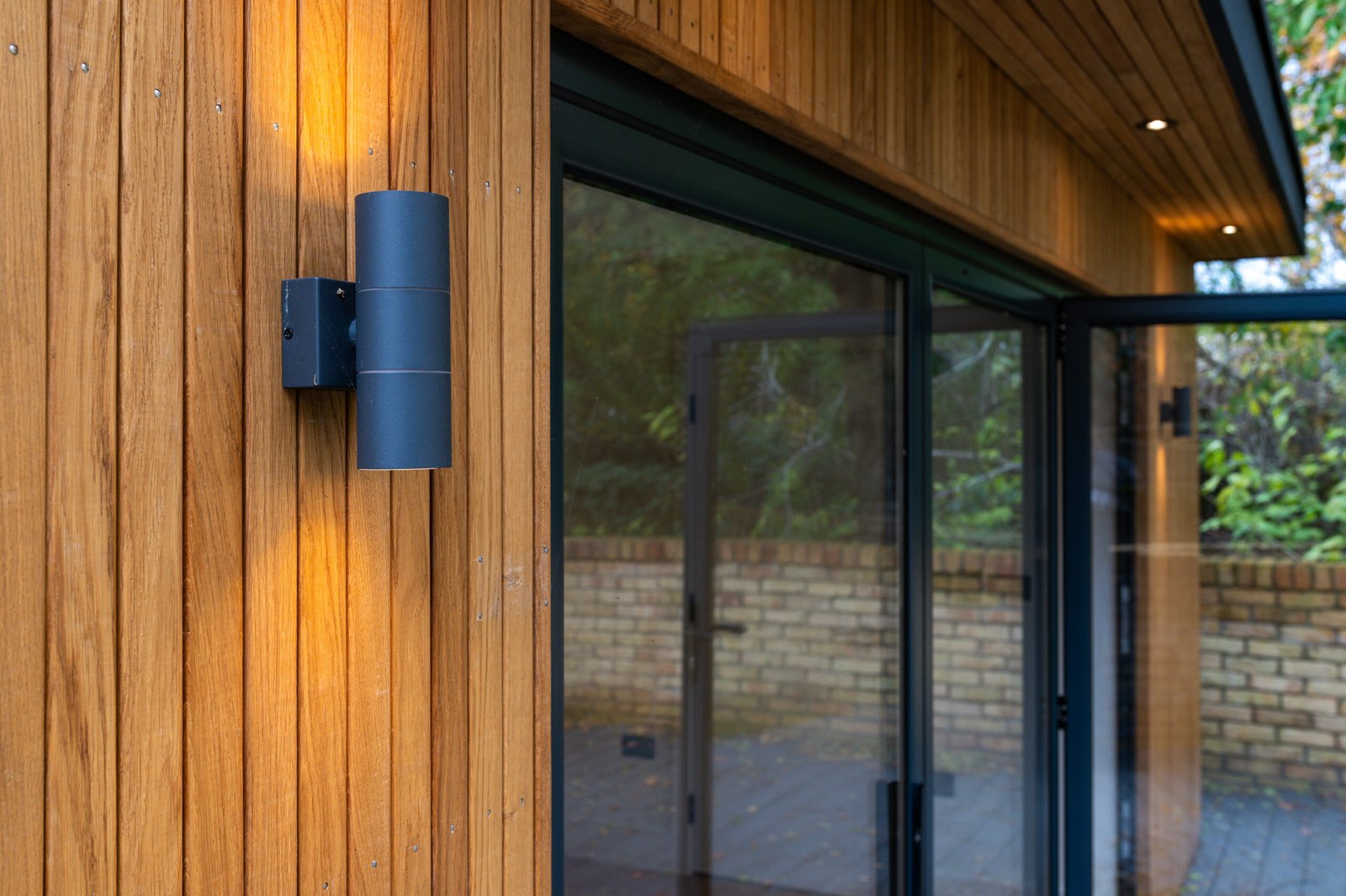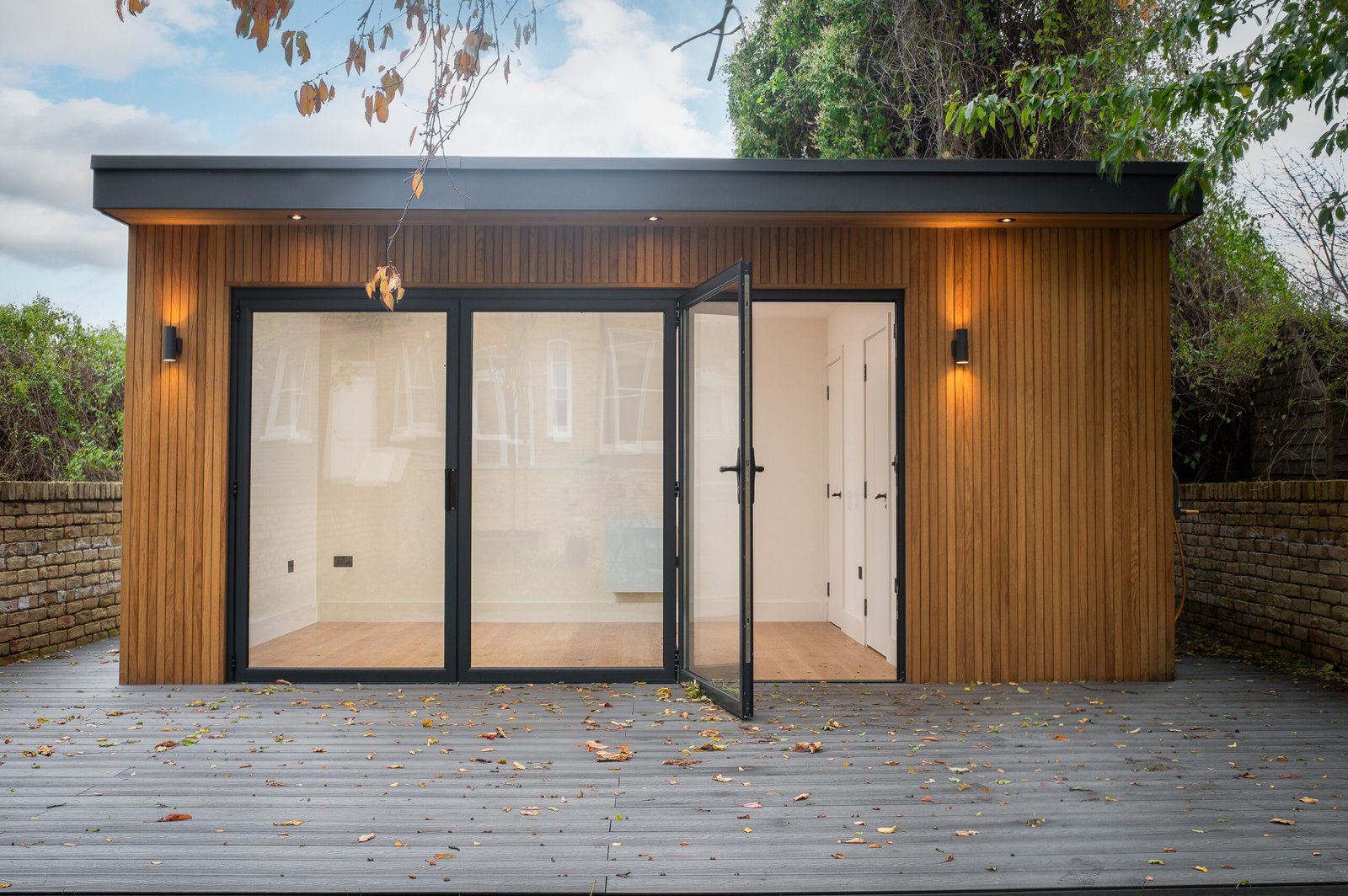 • Дизайн та Атмосфера: Зовні — Натуральне світле дерево, що виглядає стильно та сучасно. Всередині — абсолютний «White Box»: білі стіни та світле дерево, що візуально розширюють простір. Величезні двері-гармошка (Bi-fold) дозволяють одним рухом об’єднати інтер’єр із садом, наповнюючи кімнату повітрям та світлом.