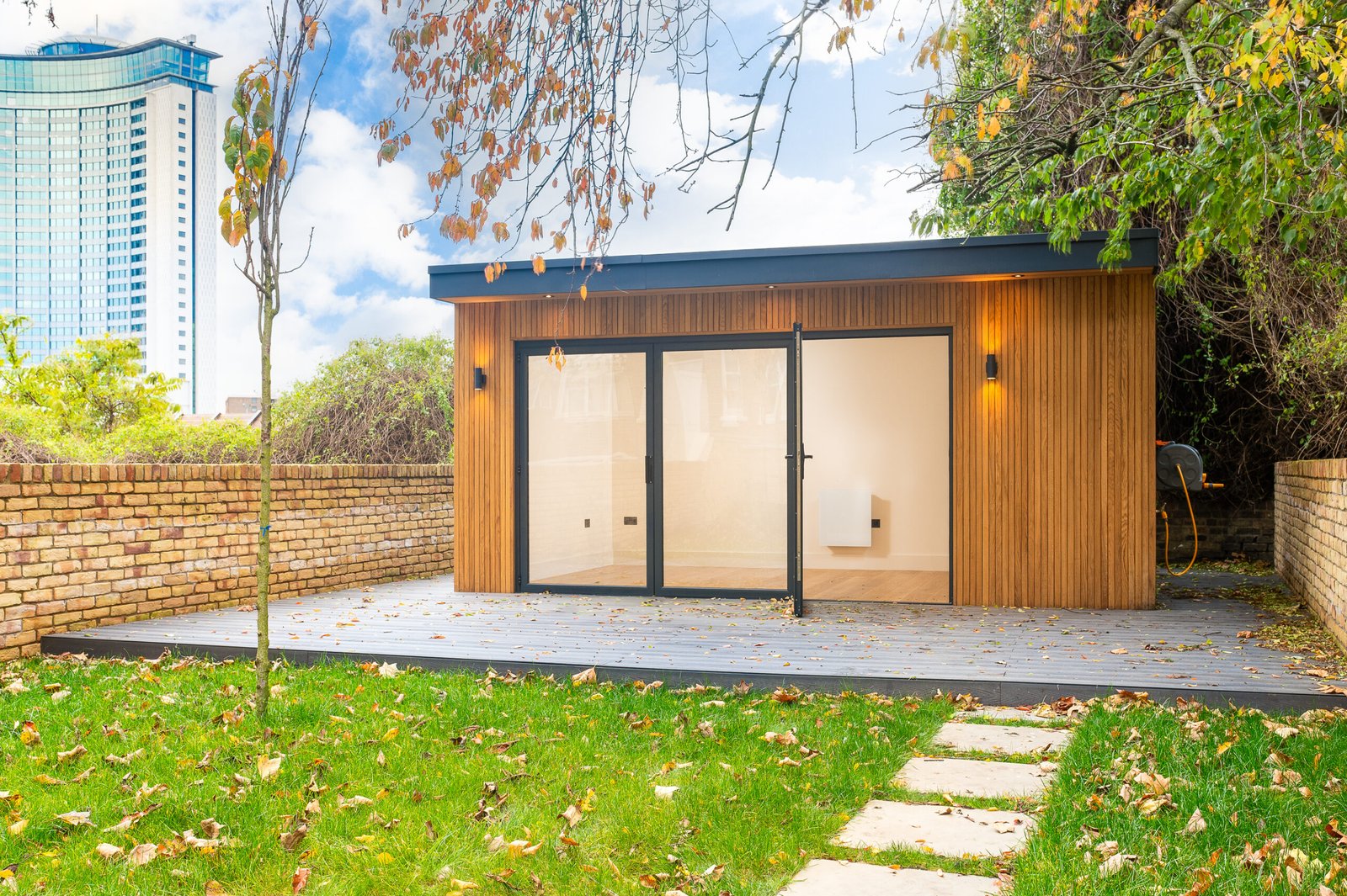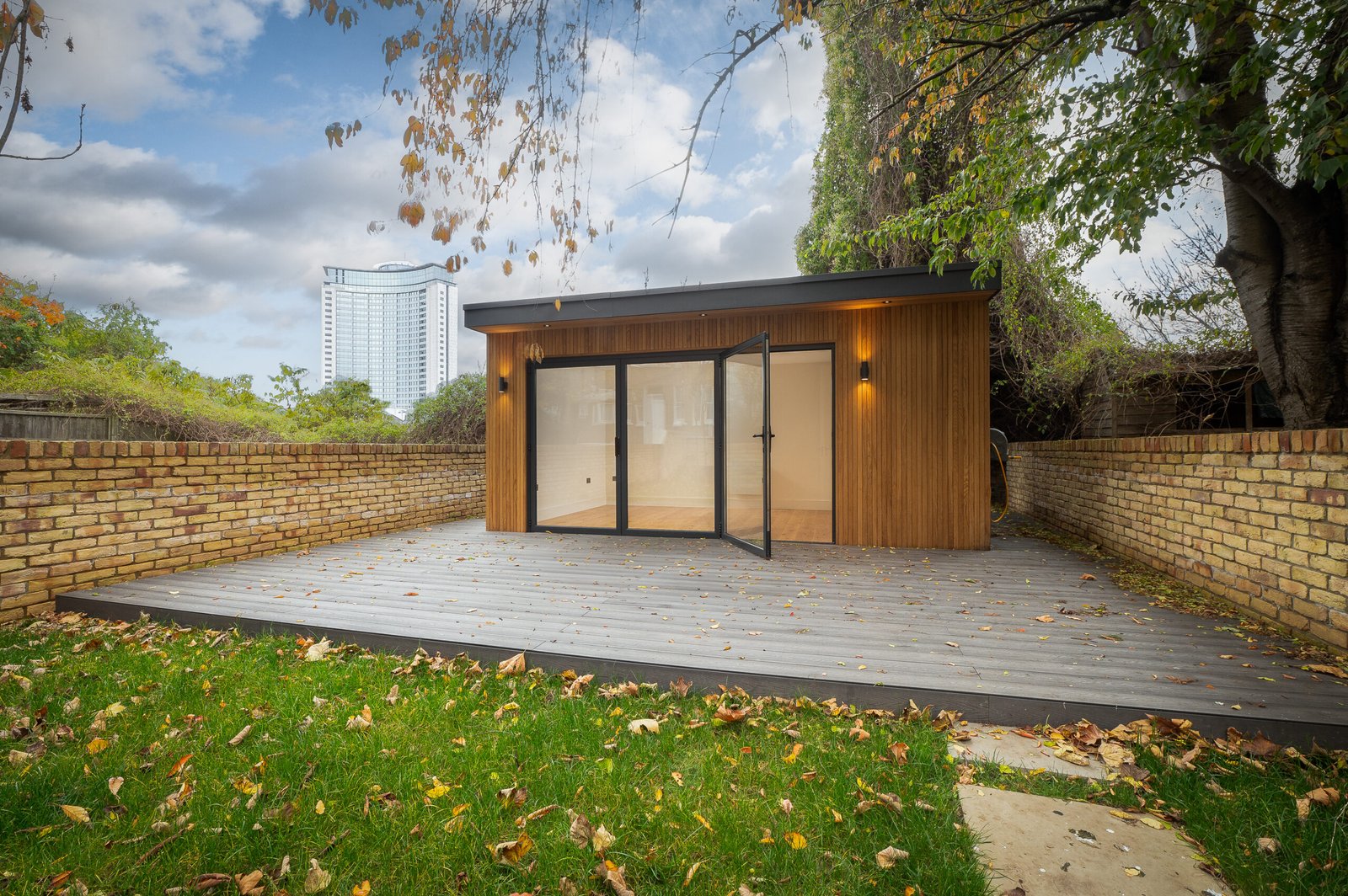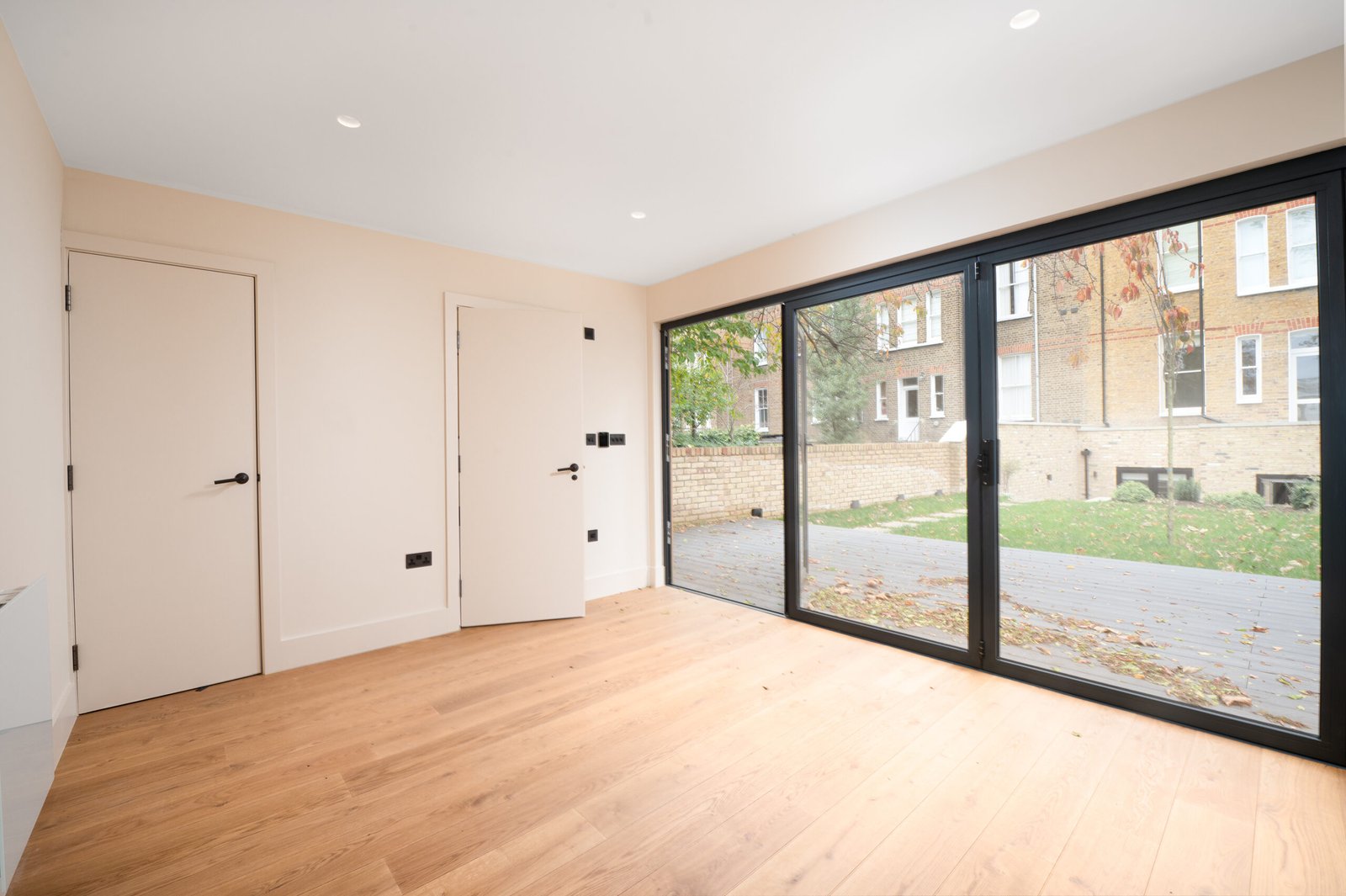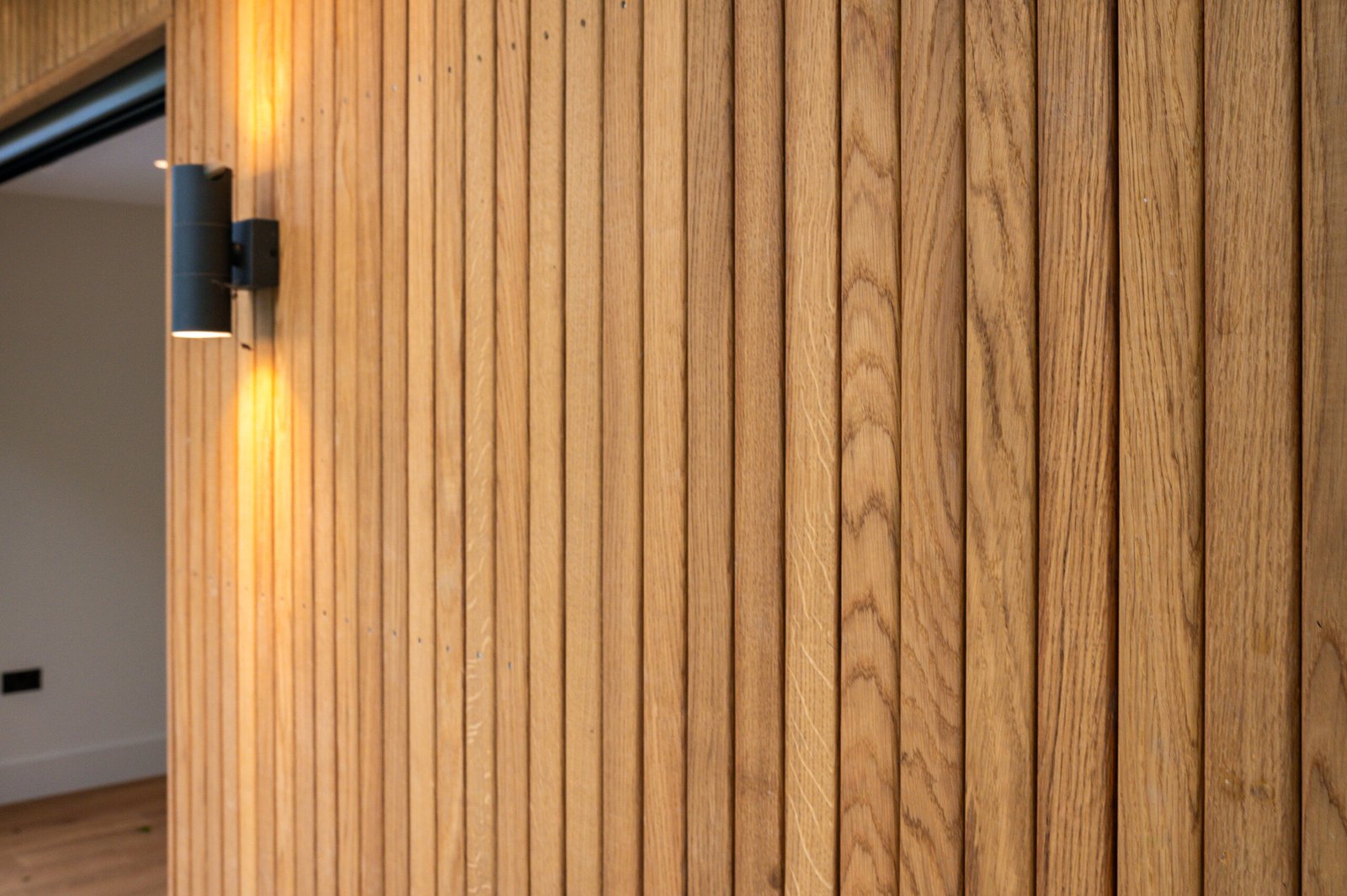 • Дизайн та Атмосфера: Зовні — Натуральне світле дерево, що виглядає стильно та сучасно. Всередині — абсолютний «White Box»: білі стіни та світле дерево, що візуально розширюють простір. Величезні двері-гармошка (Bi-fold) дозволяють одним рухом об’єднати інтер’єр із садом, наповнюючи кімнату повітрям та світлом.