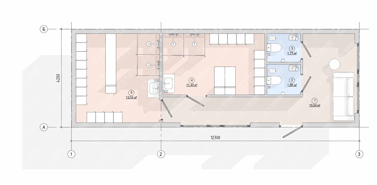 Функціональний комерційний модуль з двома роздягальнями та зоною сервісу, створений як ідеальне інфраструктурне доповнення для спортивних клубів та зон відпочинку.