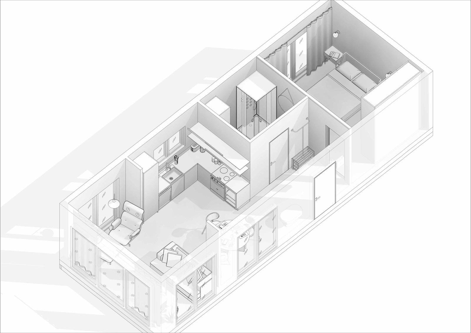 Будинок Riva реалізується за технологією TRIDENT Modular Housing, яка поєднує дерев’яно-каркасне будівництво з фабричним виготовленням конструктивних елементів.
