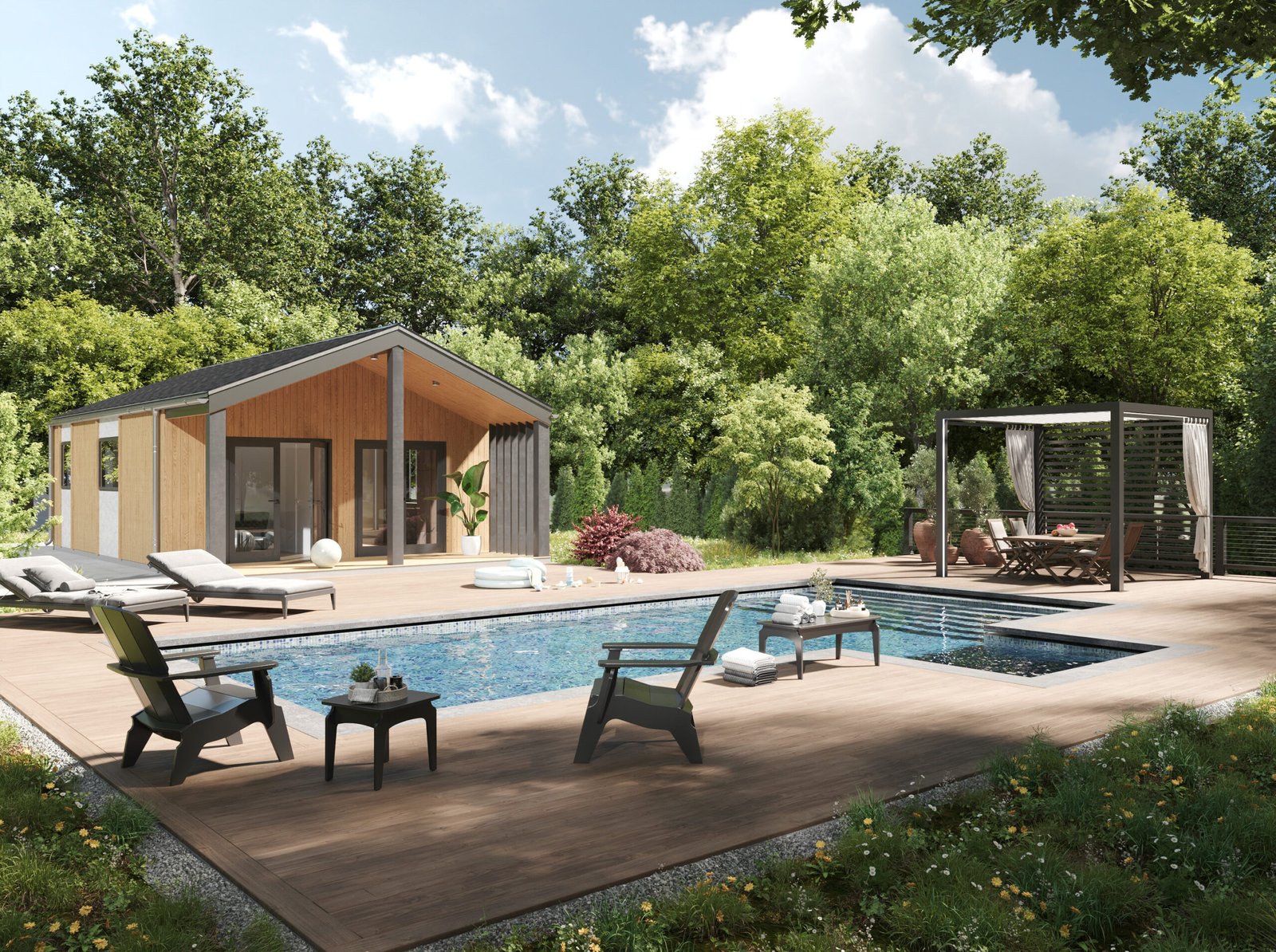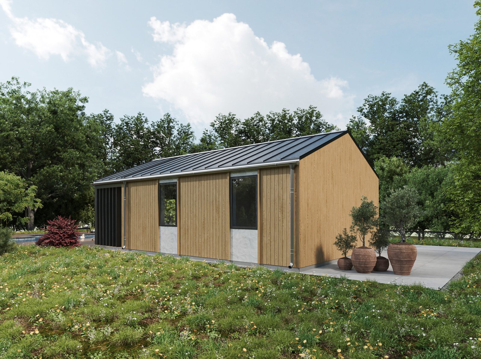 Family House — це ідеальний простір для щасливого життя всієї родини. Продумана архітектура та ергономічне планування створені так, щоб кожен мав свій куточок комфорту. Сучасний фасад, оздоблений натуральним каменем, деревом або металом, підкреслює індивідуальність дому, а панорамні вікна наповнюють простір природним світлом. Планування ідеально збалансоване: велика кухня-вітальня об’єднує родину для спільного дозвілля, тоді як затишні спальні забезпечують повну приватність. Завдяки технології Trident Modular Housing, ви отримуєте енергоефективний, теплий та довговічний дім із бездоганною якістю заводської збірки.