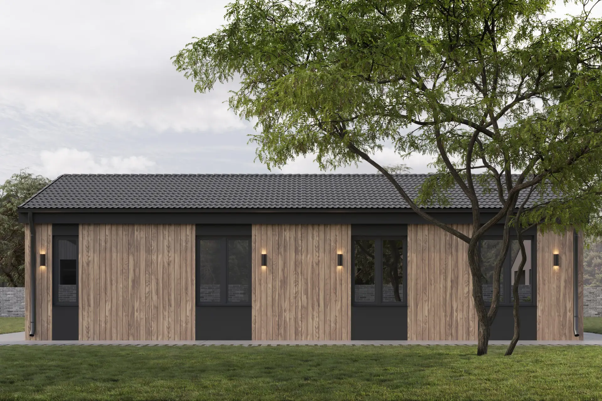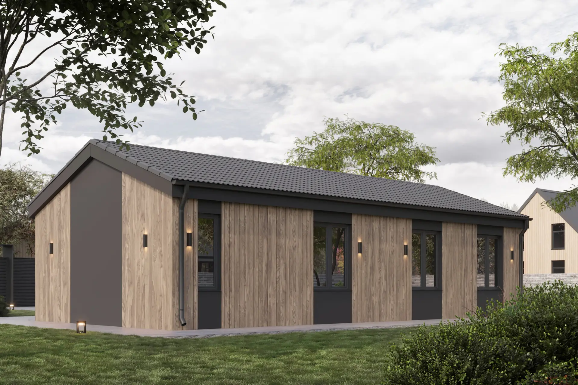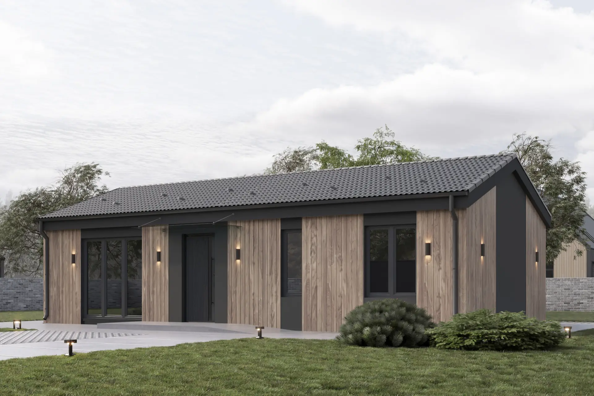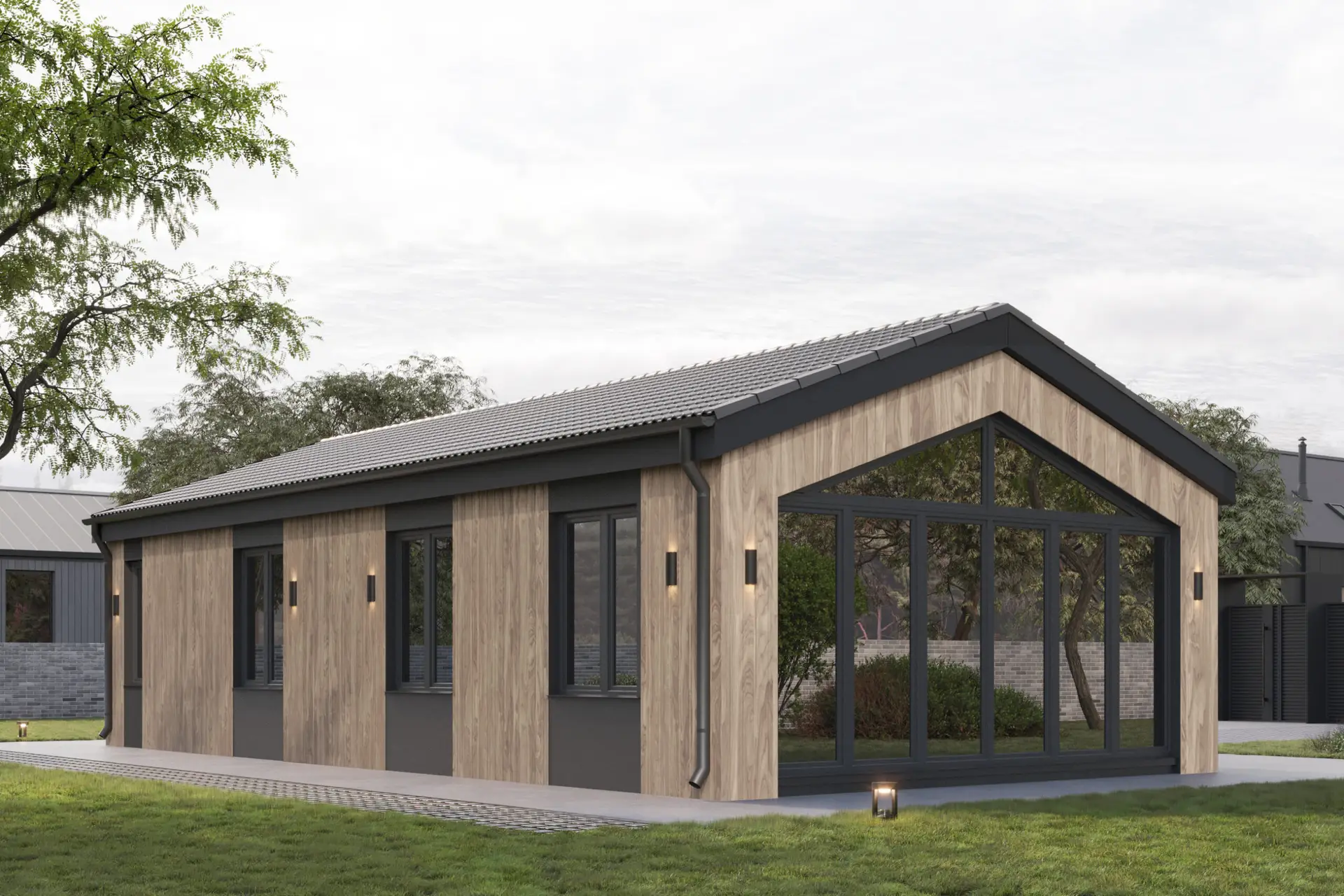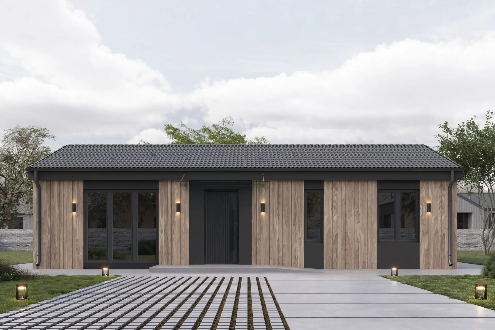 Будинок може бути виконаний у модульному форматі або як домокомплект, виготовлений на виробництві Trident Modular Housing.