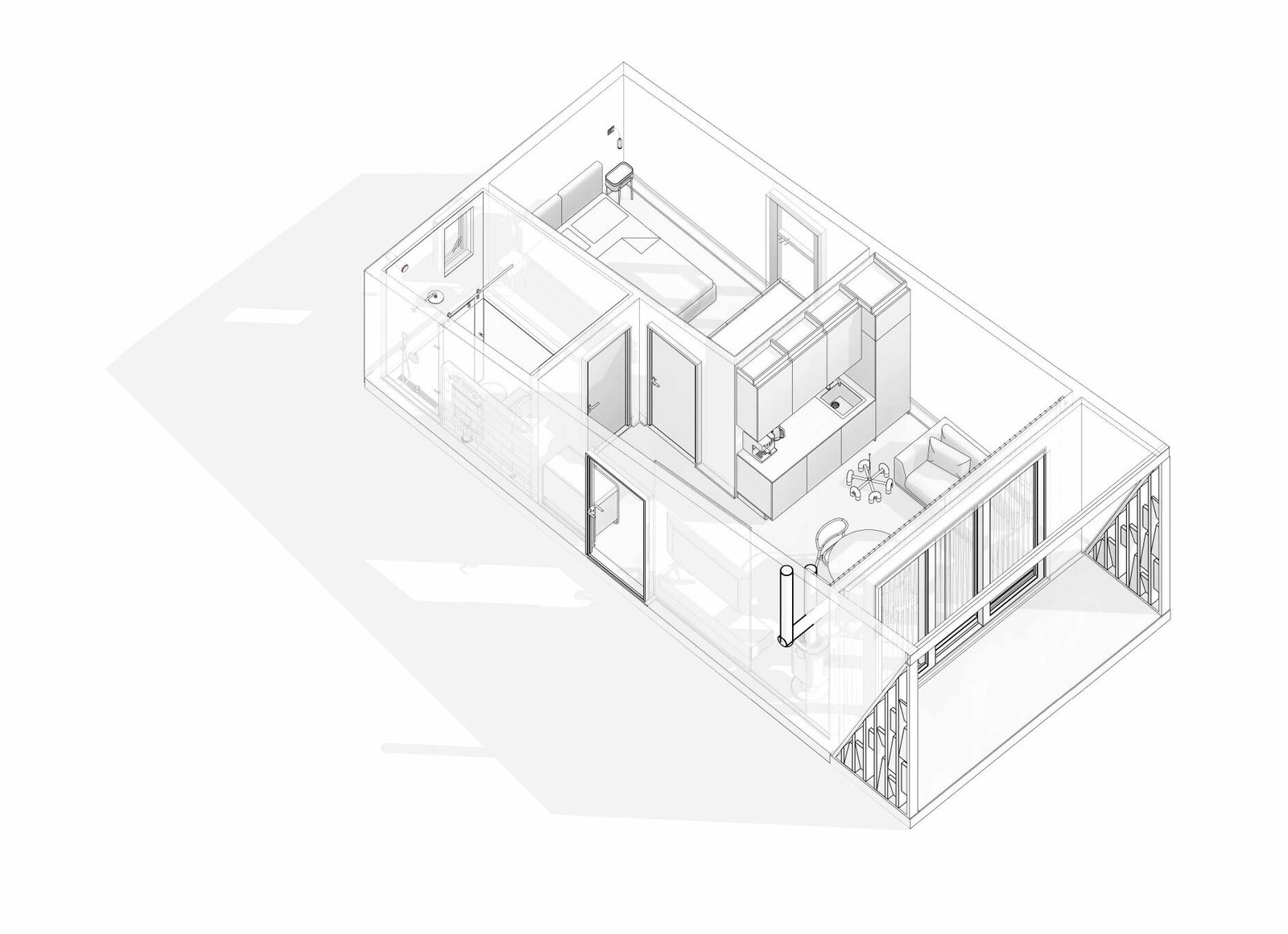 Вітальня-студія (16.93 м²): Центр тяжіння будинку з кухонною зоною та виходом на криту терасу.