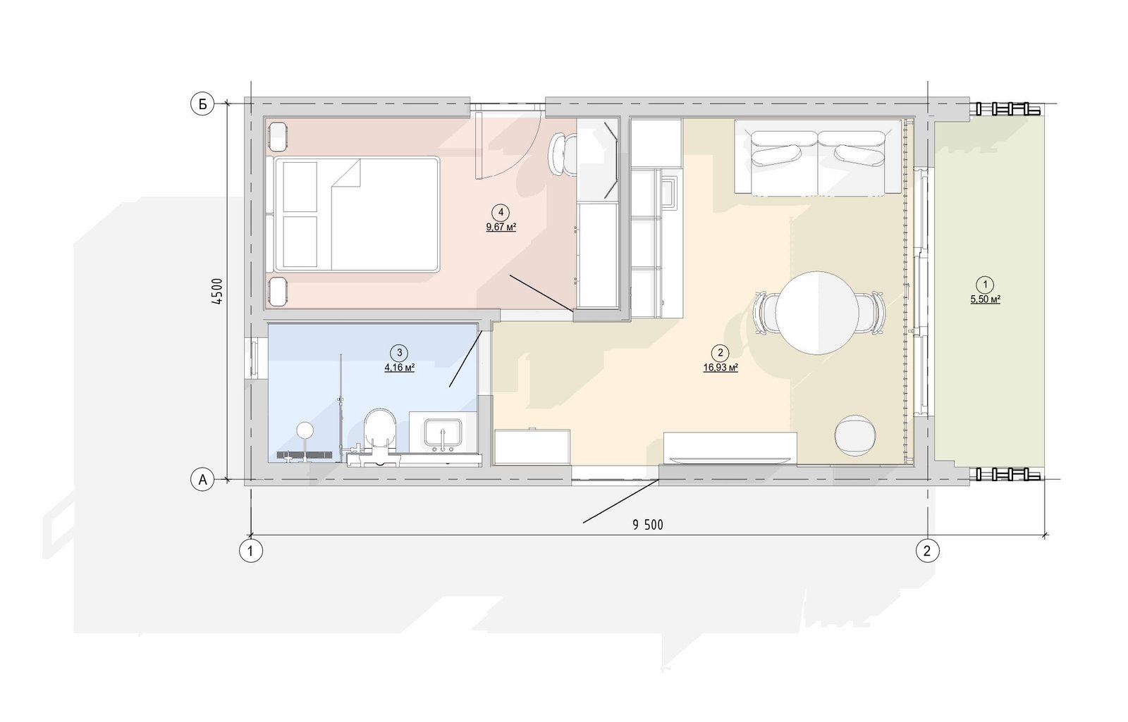 Затишна спальня (9.67 м²): Відокремлена зона для повноцінного відновлення.