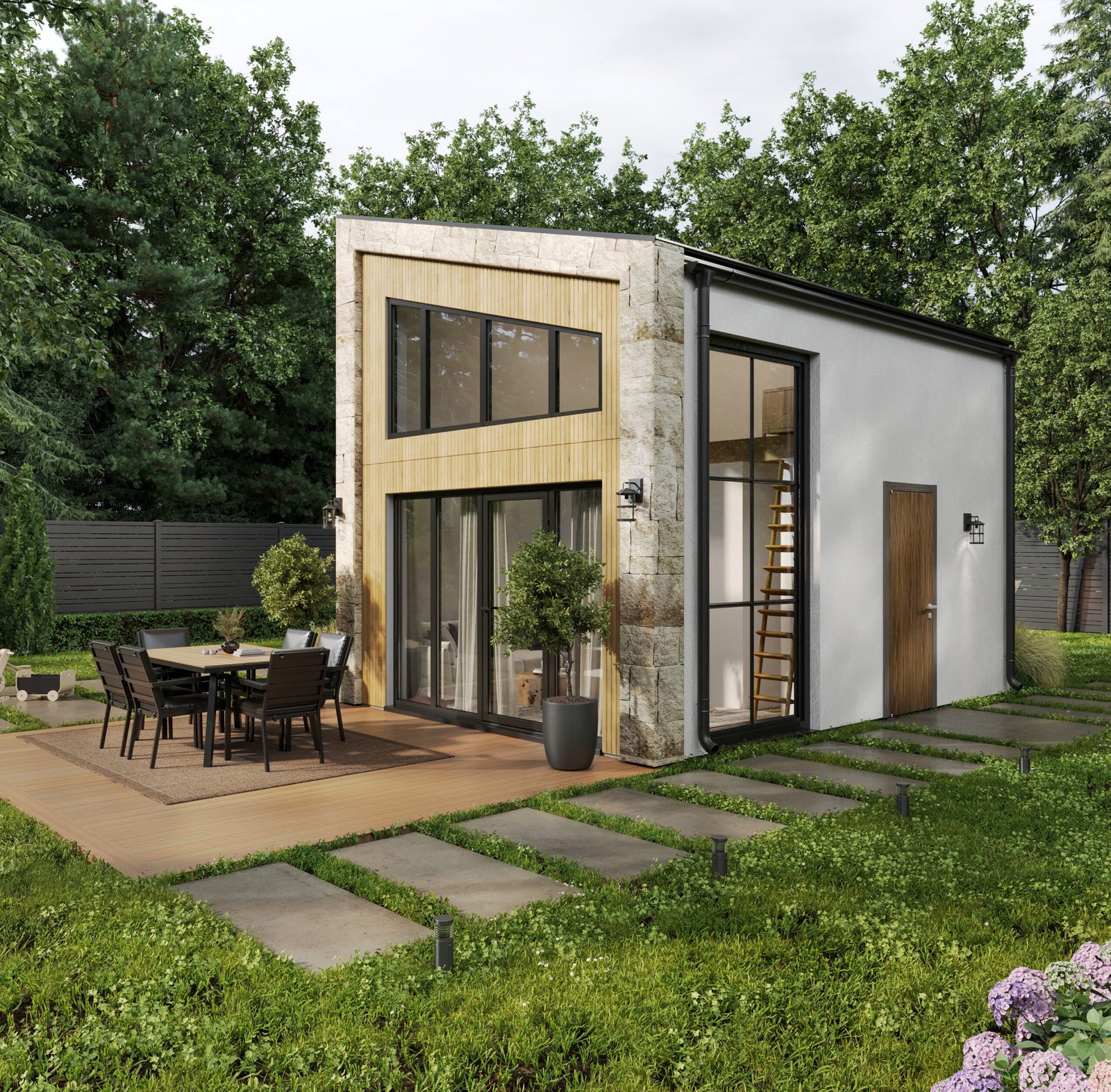 - Сталь. Міцна, довговічна та вогнестійка сталь гарантує, що будинок витримає будь-які погодні умови. Також матеріал стійкий до шкідників.