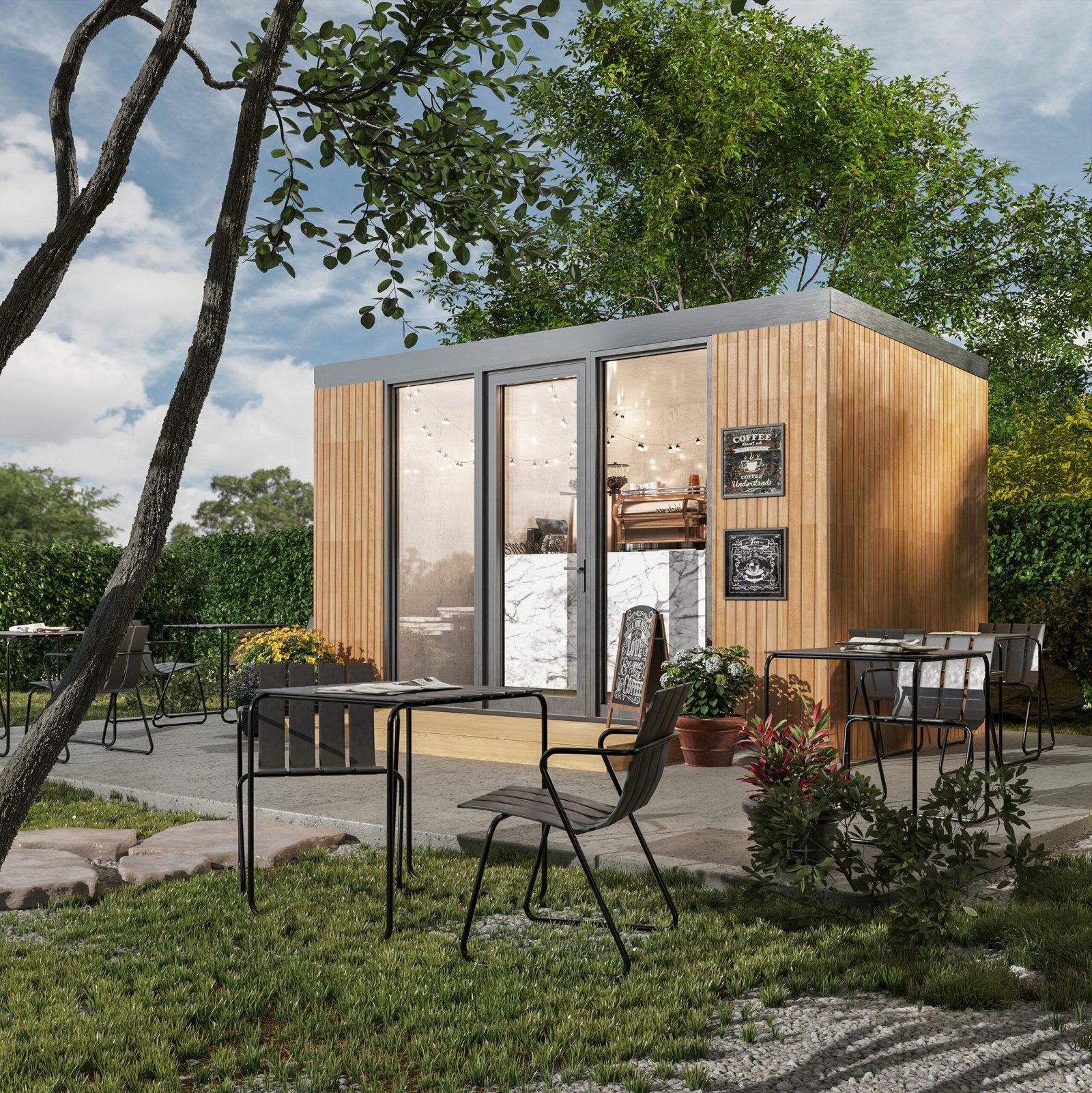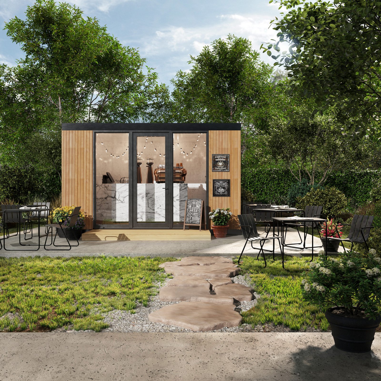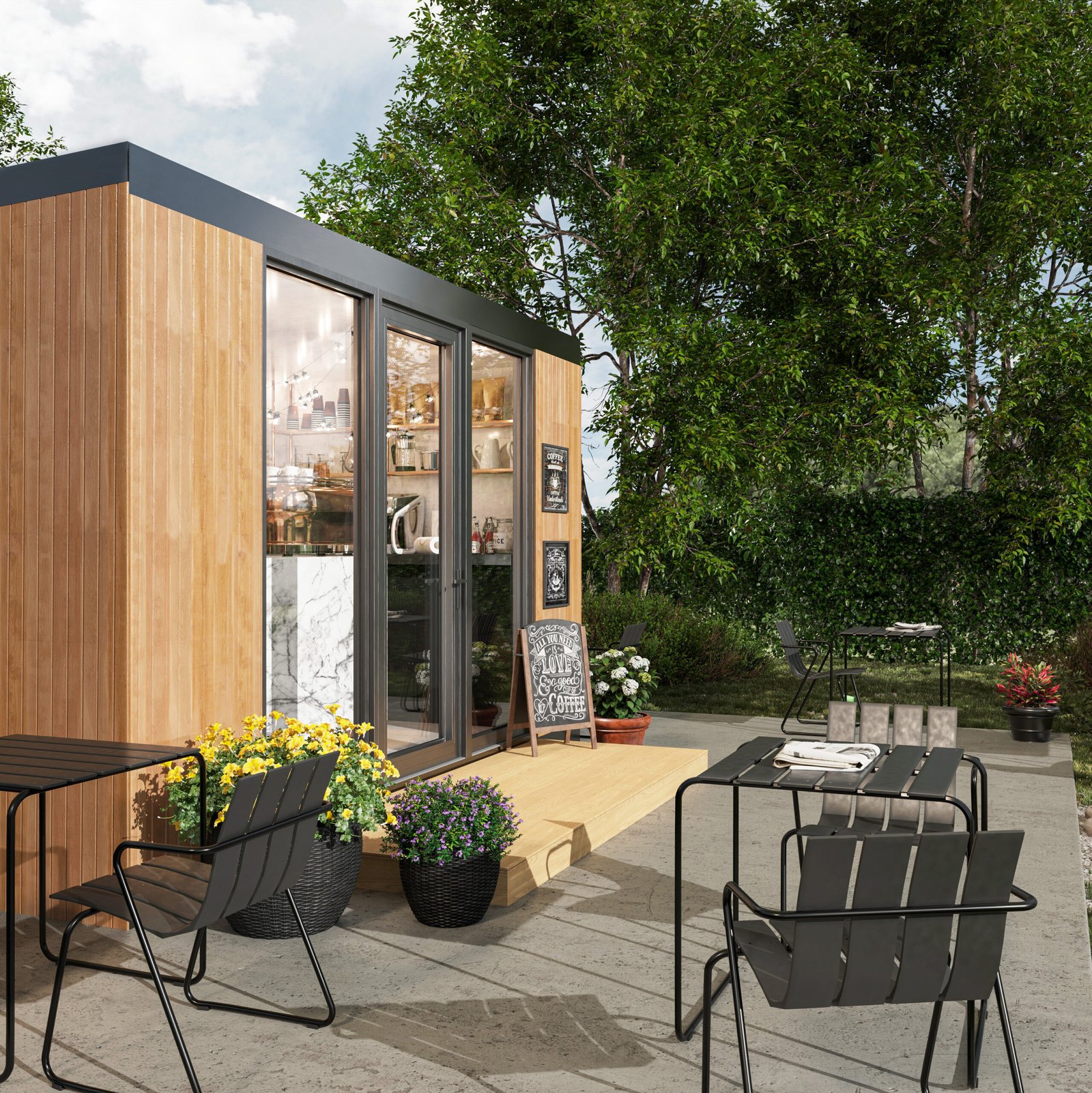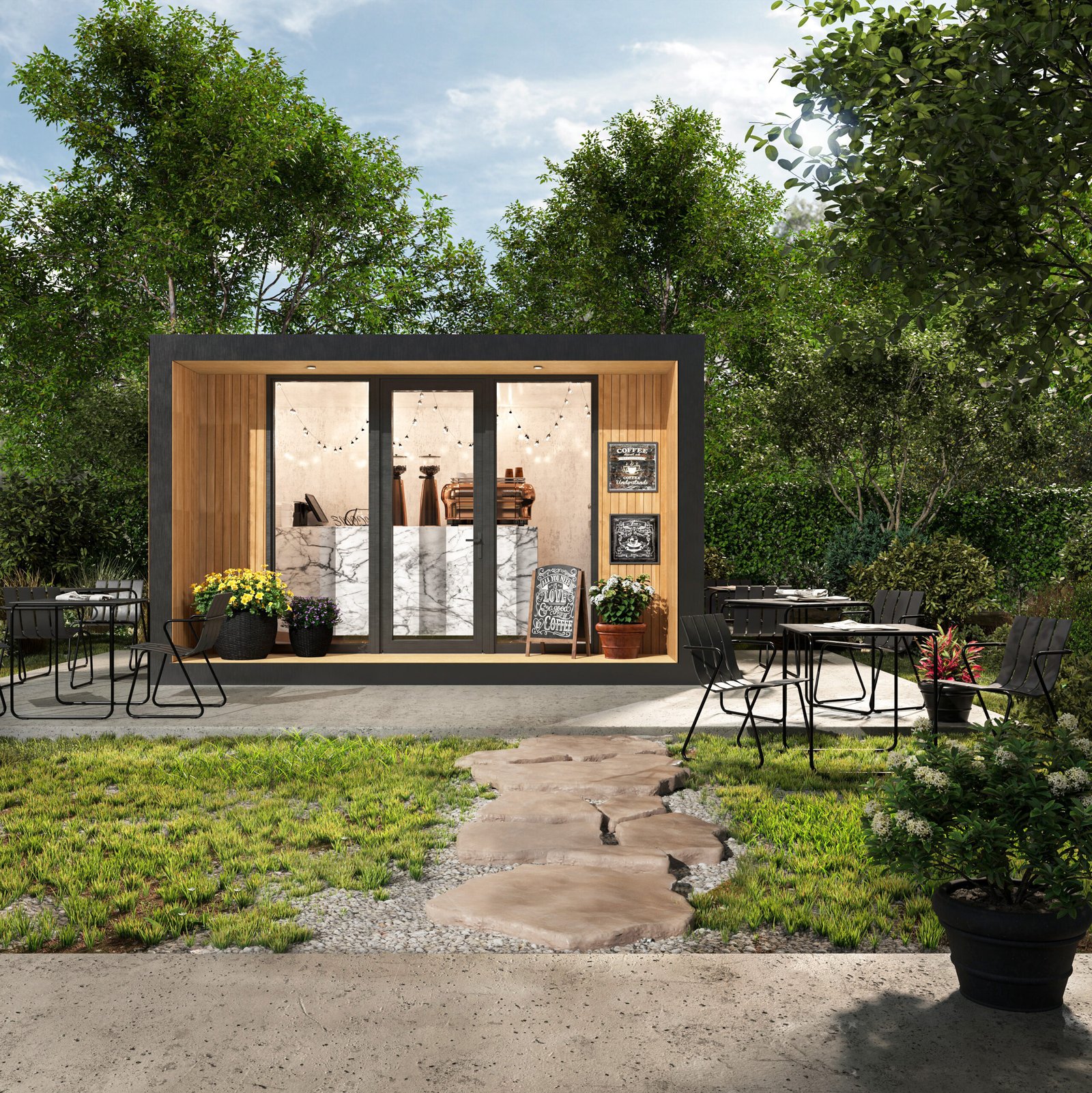 Garden Cafe — это готовое решение для быстрого запуска кофейни, фреш-бара или мини-бистро. Стильный, современный павильон создан, чтобы привлекать внимание и генерировать поток клиентов с первого дня работы. Панорамное остекление превращает заведение в яркую витрину, приглашая посетителей внутрь, а продуманная внутренняя планировка позволяет эргономично разместить оборудование и рабочую зону бариста. Главное преимущество — скорость. Модуль приезжает полностью готовым (с отделкой и электричеством). Вам остается только подключить коммуникации и занести кофемашину. Технология Trident Modular обеспечивает высокую энергоэффективность, что критически важно для снижения затрат на отопление и кондиционирование бизнеса.